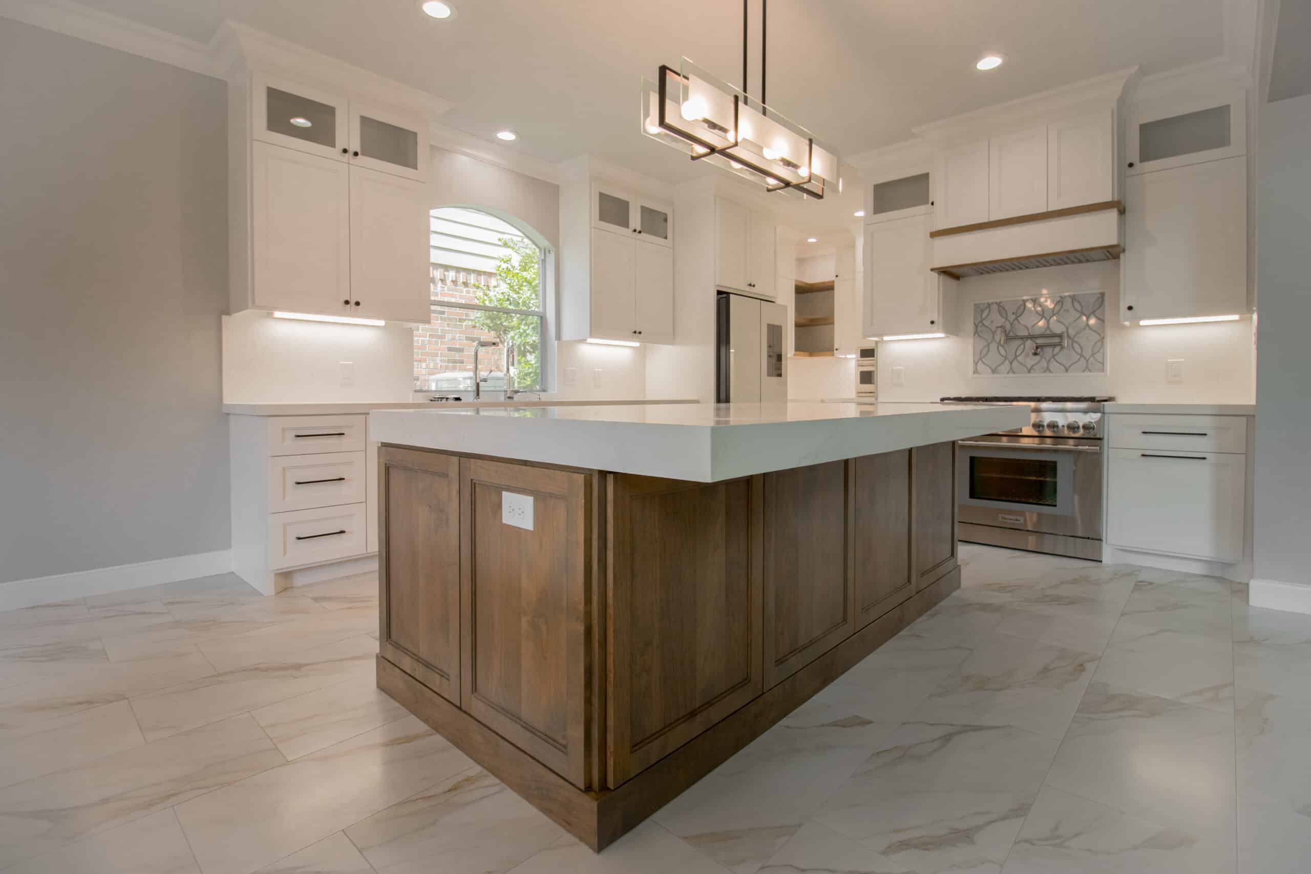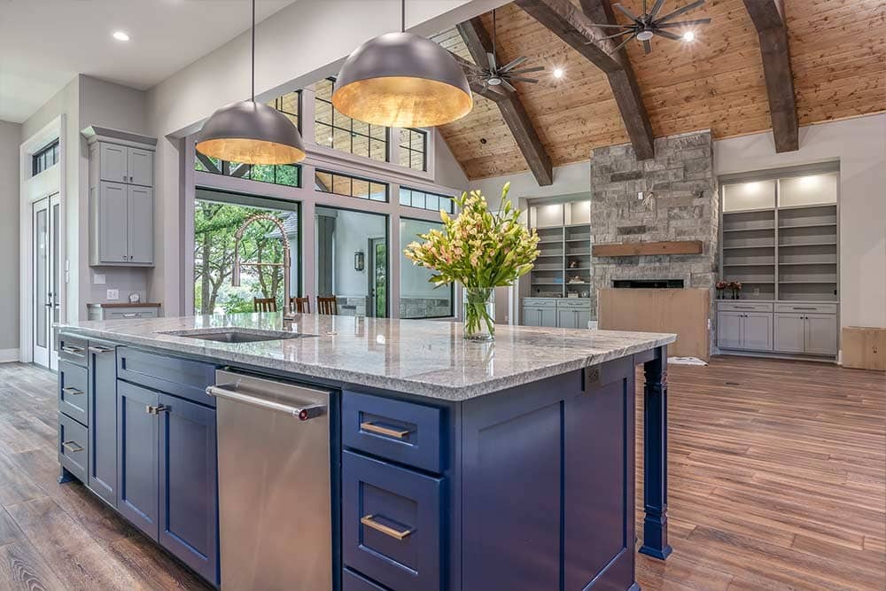 These finish items usually create the biggest swing in perceived quality and budget. A kitchen can jump by tens of thousands of dollars when cabinet grade or countertop material changes.